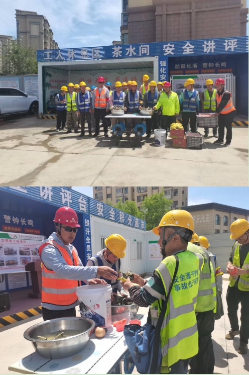 在嚴格把控安全生產(chǎn)的同時,項目部始終關(guān)懷工友們的生活需求。端午節(jié)當(dāng)天,項目領(lǐng)導(dǎo)班子帶領(lǐng)管理團隊為工友們送上粽子、香蕉、蘋果等節(jié)日慰問品。慰問現(xiàn)場,項目負責(zé)人與工友們親切交流:“在這個本該與家人團聚的日子里,你們舍小家、為大家,依然堅守崗位,為高橋家園保障性租賃住房項目建設(shè)揮灑汗水。正是因為有你們的辛勤付出,項目才能穩(wěn)步推進。希望大家在作業(yè)的同時,一定要把安全放在首位,注意勞逸結(jié)合、保重身體。”真摯的話語如汩汩清泉,流淌在每位建設(shè)者心間。