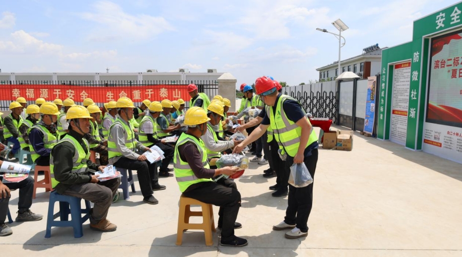 為切實(shí)保障施工一線勞動(dòng)者們身心健康,6月16日,濱臺(tái)二標(biāo)項(xiàng)目部組織開展“夏日送清涼”慰問活動(dòng),為他們送上防暑藥品、冰糖、水杯、菊花、茶葉、冷飲等防暑用品。